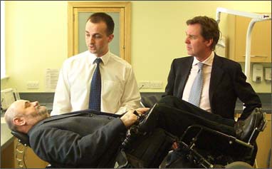 Darlington MP Alan Milburn sees at first hand how the diaco® dental chair for wheelchair patients give the dental team safe access to carry out oral care. Pictured with Alan Milburn is Steve Campbell, director of diaco, and Gordon Pybus, Chair of DAD Darlington Association on Disability.